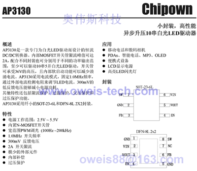 AP3127 SOT23-6 boost串联3~6 LED驱动, 0.25v反馈电压 可替换型号 RT9271、PT4101
