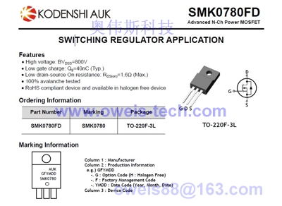 SMK0780FD TO-220F Single N-ch 800V 7A