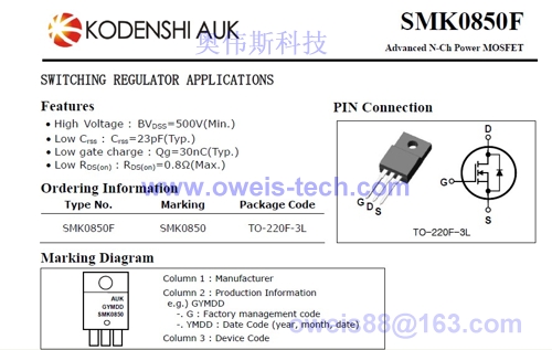 AUK韩国光电子的Power MOSFET广泛应用于MotorRr控制,Power MOSFET gate drive,低电压/低电压交换应用,尤其适合用于DC/DC转换器,SMPS,PFC,电子式安全装置等高效率交换领域.而这种Power MOSFET产品是用CELL密度很高的Trench及DMOS技术制作的.