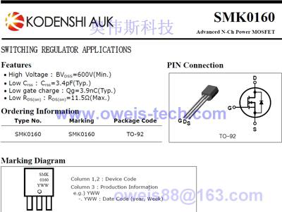 SMK0160 TO-92 Single N-ch 600V 0.3A