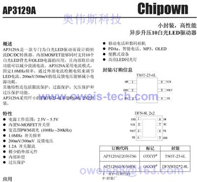 AP3127 SOT23-6 boost串联3~6 LED驱动, 0.25v反馈电压 可替换型号 RT9271、PT4101