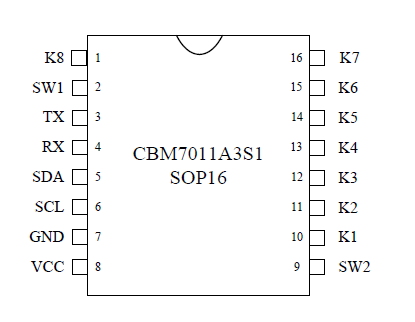 CBM7008是一颗有8个按键的电容式触摸控制芯片。采用Sop16封装,支持I2C和GPIO两种通讯接口。