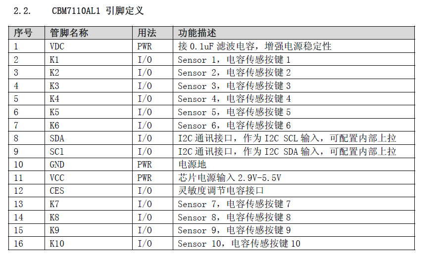 序。CBM71xx 都采用I2C 标准接口,支持通过外部校准电容调节灵敏度和I2C 命令调节灵敏度。
