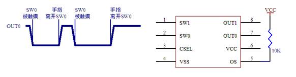 典型应用: 配合单片机使用,可应用于各种小家电,数码产品,玩具等;单个IC可以实现LED灯的触控开关和触摸调光