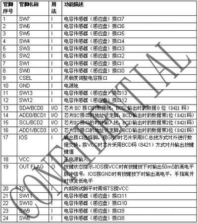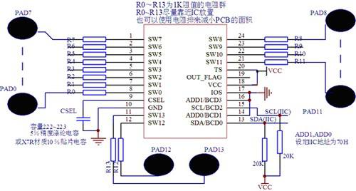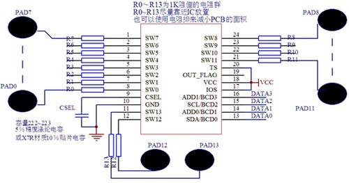 按键灵敏度调节方式: 改变基准电容CSEL 的值可对按键的灵敏度进行调节