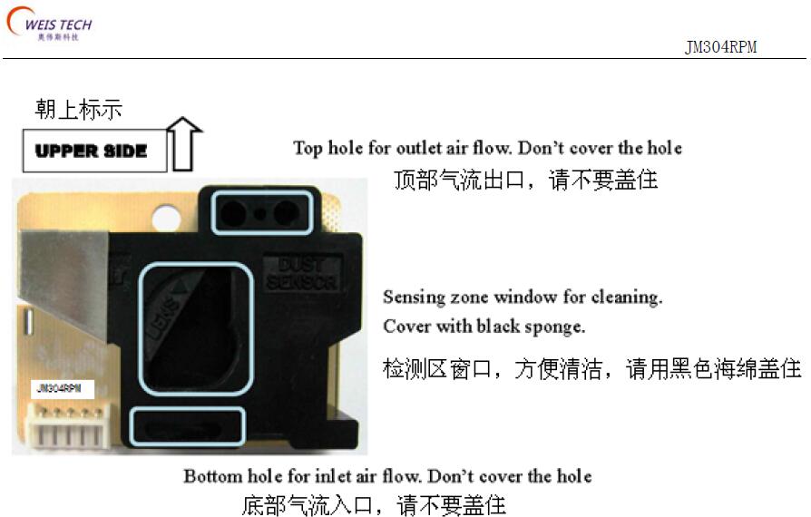 灰尘传感器“JM304RPM”说明书包含传感器的使用方法,使用注意事项,特征参数等,为用户提