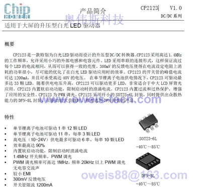 | CP2123/CP2124-串联升压式白光LED背光驱动 |
