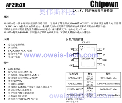 AP2952A,是一个同步降压的转换器。通常应用于12V/9V 转换成5V,或者5V 转换成3.3V 等场合,最高