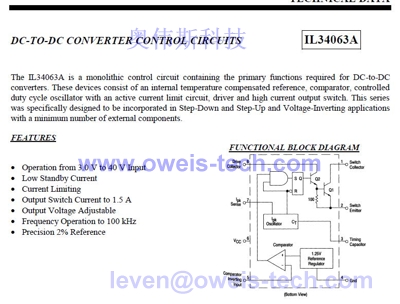 IL34063A是包含DC-DC转换器所需的主要功能的单片控制电路。 这些器件由内部温度补偿参考,比较器,带有功电流限制电路的受控占空比振荡器,驱动器和高电流输出开关组成。 该系列专门设计用于最小数量的外部元件的降压和升压和电压反相应用。