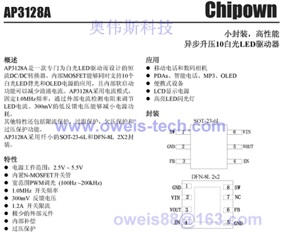 AP3127 SOT23-6 boost串联3~6 LED驱动, 0.25v反馈电压 可替换型号 RT9271、PT4101