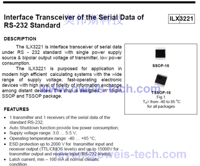 ILX3221是RS-232标准的串行数据接口收发器,具有单电源和变送器双极性输出电压,功耗低。