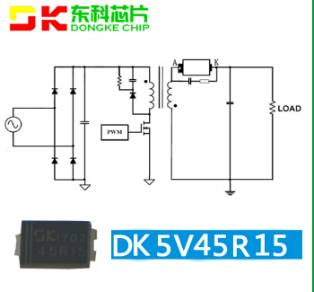 DK5V45R15 是一款简单高效率的同步整流芯片,只有A,K两个引脚,分别对应肖特基二极管的A,K引脚。芯片内部