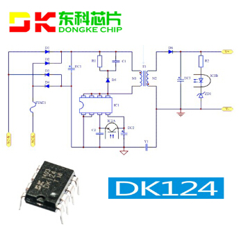 DK124是一款离线式开关电源芯片,最大输出功率达到24W。不同于PWM控制器和外部