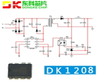 DK1203 芯片是专用小功率开关电源控制芯片,广泛用于电源适配器、LED电源、电磁炉、 空 调、DVD等小家电产品。