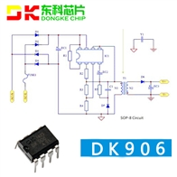DK906是一款原边反激式AC-D开关电源控制芯,芯片集成了700V高压开关功率管和初级峰值电流检测电路,芯片内还包含有原边反馈恒流、恒压控制及自供电电路,并具有输出线缆补偿功能,芯片采用高集成度的CMOS电路设计,外围元件极少,变压器设计简单,隔离输出电路的变压器只需要两个绕组。