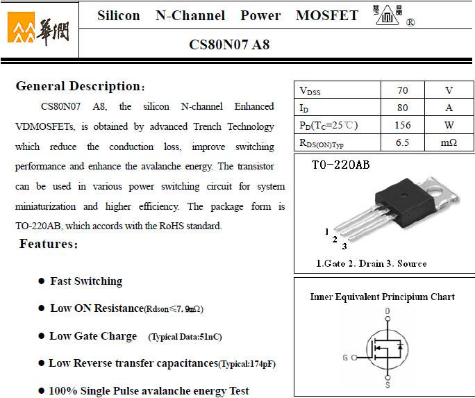 CRST065N08N 85V 121A TO-220 电动车低压MOS管