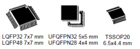 − 1个I2C接口:支持快速脉冲模式(1 Mbit/s), 20mA电流槽,支持SMBus/PMBus和从Stop模式唤醒