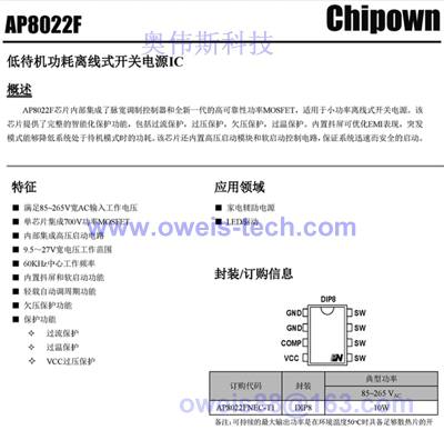 AP8022 18W DIP-8 最高输出18W 可完全兼容 替换 ST/VIPER22