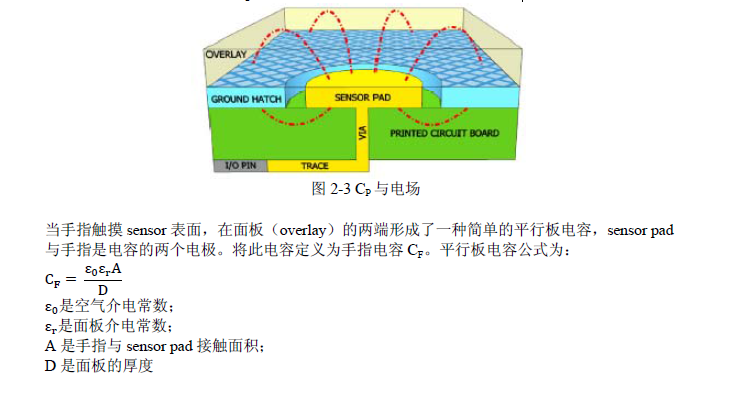 连接pin 脚之间的引线,电路板过孔以及控制器封装片pin 脚电容。CP 与sensor pad 之间的电