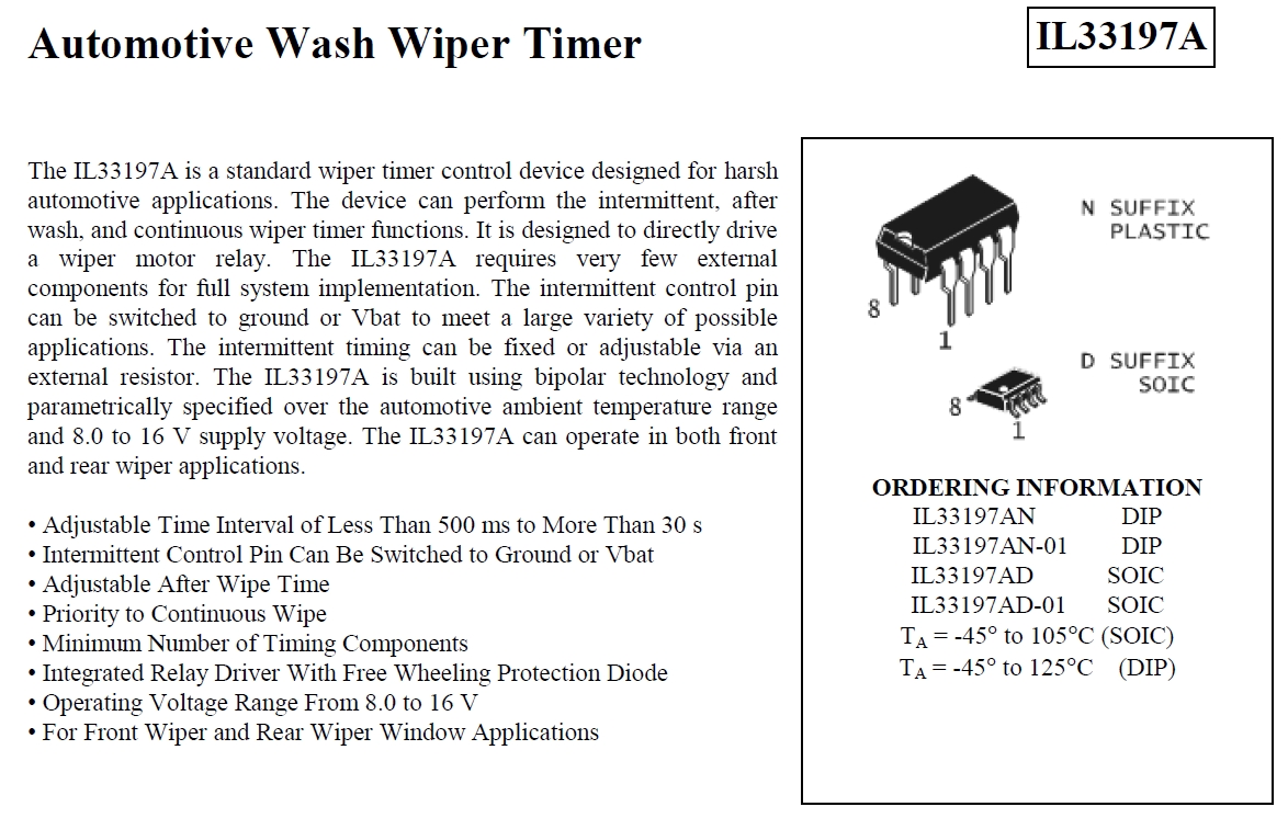 IL33197AN IKSEMICON汽车清洗雨刮器计时芯片