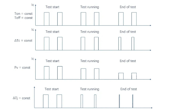 ΔTJ = const恒定的结温Tj波动:在测试过程中,减少导通的时间来维持恒定的结温波动