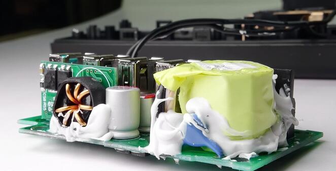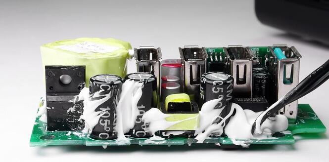 使用了很多白胶用了固定原件,可惜的是USB插座间并没有打白胶。