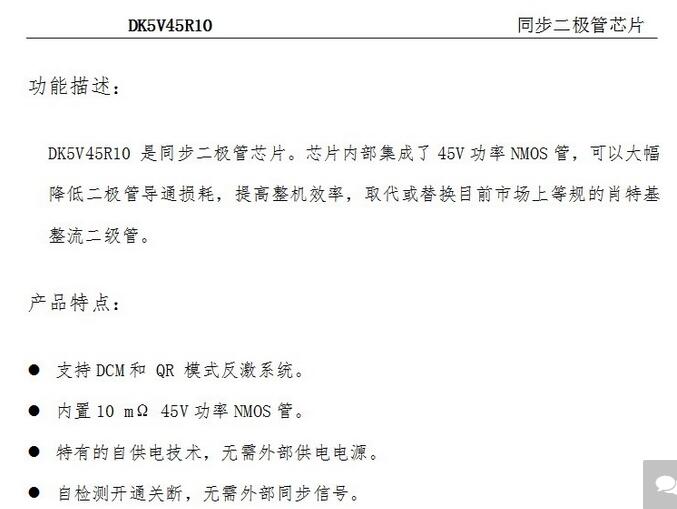 这是一只高度集成化的同步整流芯片封装而成的最新二极管芯片,是最简单的同步整流电路,为国产芯片的进步感到欣慰。品牌为东科半导体。