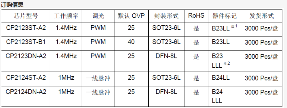 - 1.4MHz开关频率,PWM调光(CP2123)