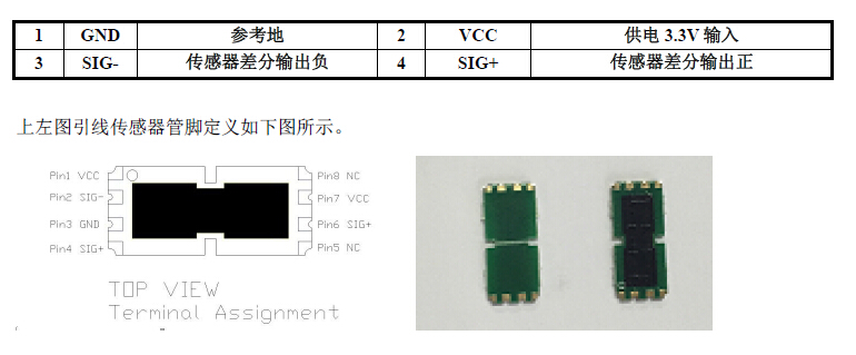 如上右图所示为表贴传感器接口,用于连接JM6801 传感器。管脚定义排列及说明如下图。