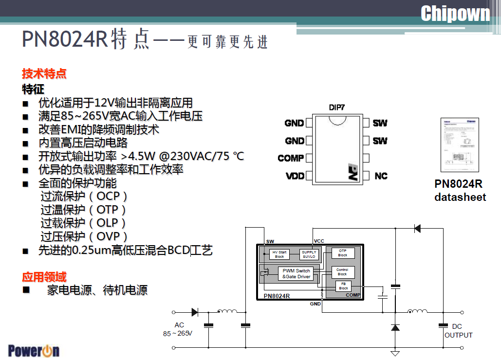 PN8024R芯朋微高性能非隔离专用AC-DC应用介绍