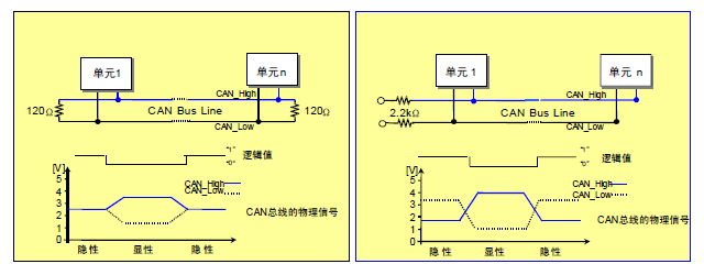 隐性电平对应逻辑 1,CAN_HI,CAN_LO均浮空