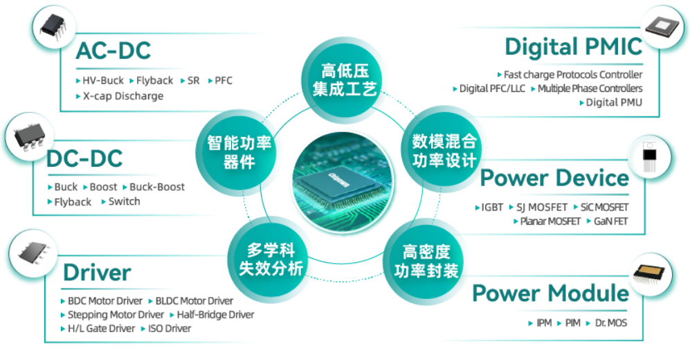 芯朋微 Chipown是国内首家覆盖AI服务器一次、二次、三次电源全链路的芯片企业。针对市场的高算力GPU服务器与数据中心高压供电需求,推出12款高端服务器电源新品,涵盖1700V SiC辅源、800V HVDC、多相VRM、DrMOS、eFuse等核心品类。适配AI服务器高压直流架构,转换效率超95%。填补了国产高端算力供电芯片的市场空白。