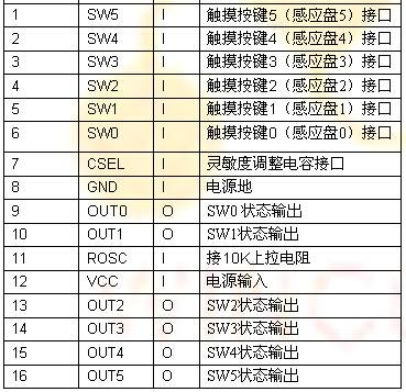 WTC6106BSI,6通道电容式触摸感应IC,输入/输出一对一,高/低电平输出。NSOP16封装,用于厨房电器,卫浴电器,数码产品的触摸感应按键板。