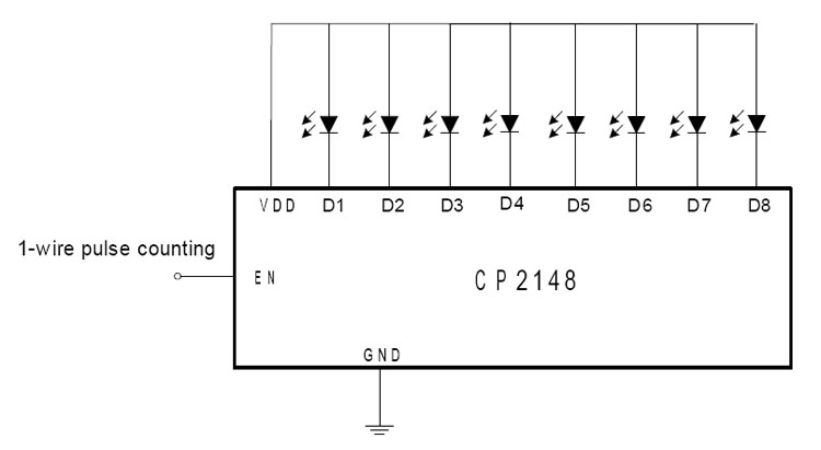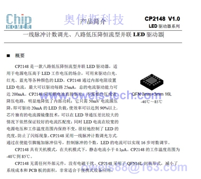 | CP2148- 一线脉冲计数调光、八路低压降恒流型并联 LED 驱动器 |